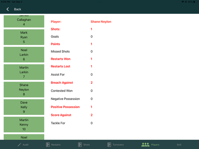 Get granular with individual player performance, featuring involvement in standard game phases and any custom KPIs/counters you've set up.